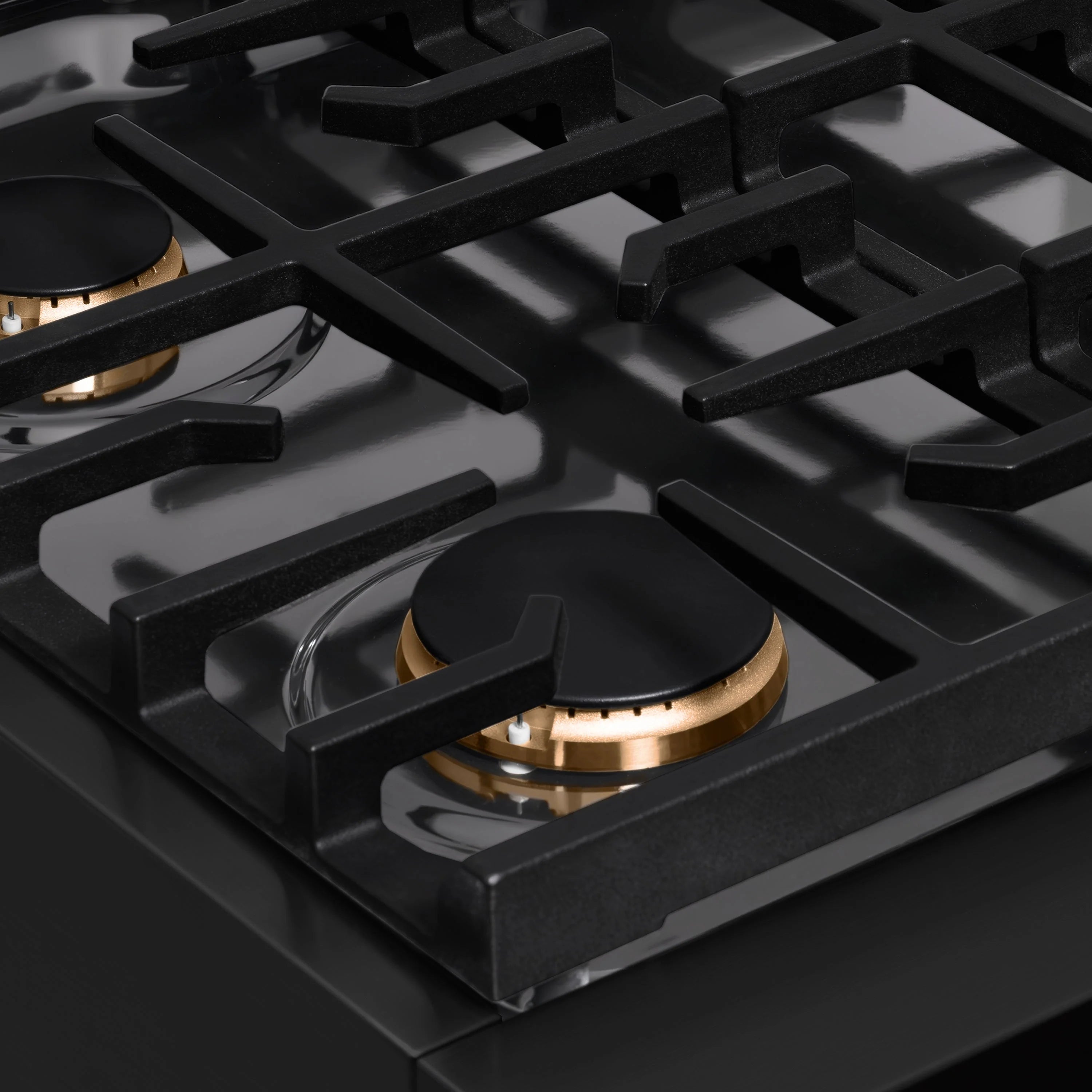 Luxury isn’t meant to be desired - it’s meant to be attainable. The ZLINE 30 in. Autograph Edition Paramount Gas Rangetop with 4 Burners and Porcelain Cooktop in Black Stainless Steel with Champagne Bronze Accents (SRTBZ-30-CB) features 4 Italian-made auto-reignition burners, a hand-crafted porcelain cooktop, enhanced cast iron grates, and elegant champagne bronze knobs allowing you to master every meal. With a modern, timeless style and refined functionality, ZLINE Paramount Gas Rangetops are masterfully crafted to deliver an elevated culinary experience.