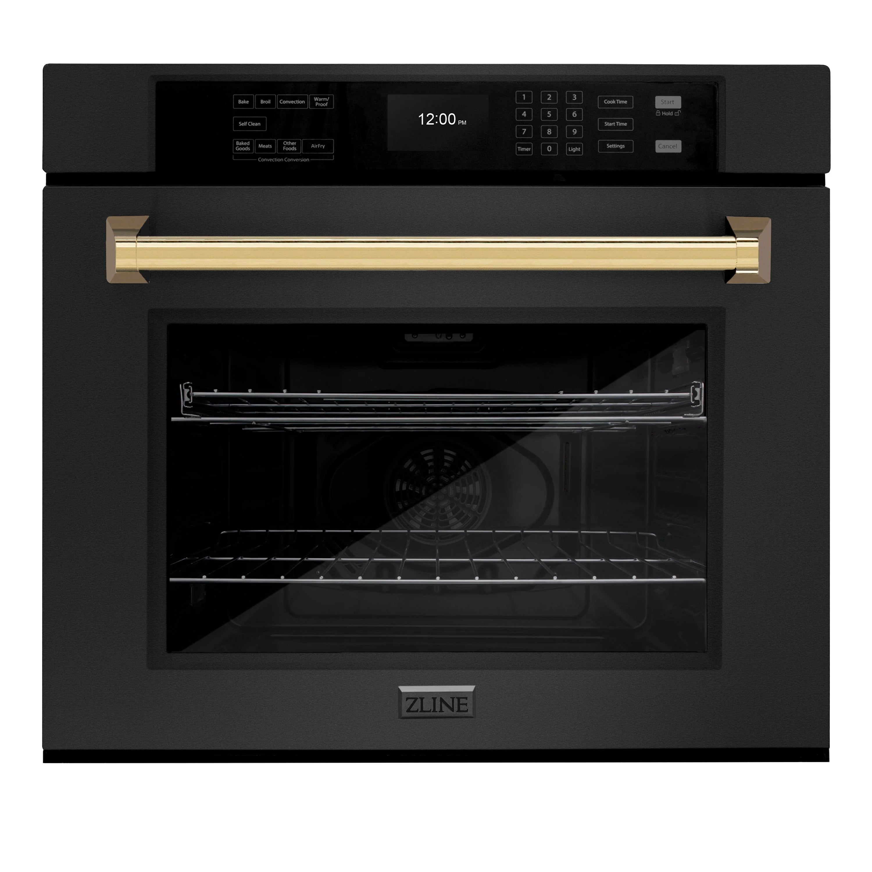 Luxury isn’t meant to be desired - it’s meant to be attainable. The ZLINE 30 in. Autograph Edition Professional True Convection Single Wall Oven with Air Fry and Self Clean in Black Stainless Steel with Polished Gold Handle (WASBZ-30-G) provides a professional culinary experience by pairing reliable, everyday performance with contemporary convection cooking capabilities and cutting-edge air frying technology. Achieve ZLINE Attainable Luxury® excellence with innovative features designed to enhance your kitchen’s capability.