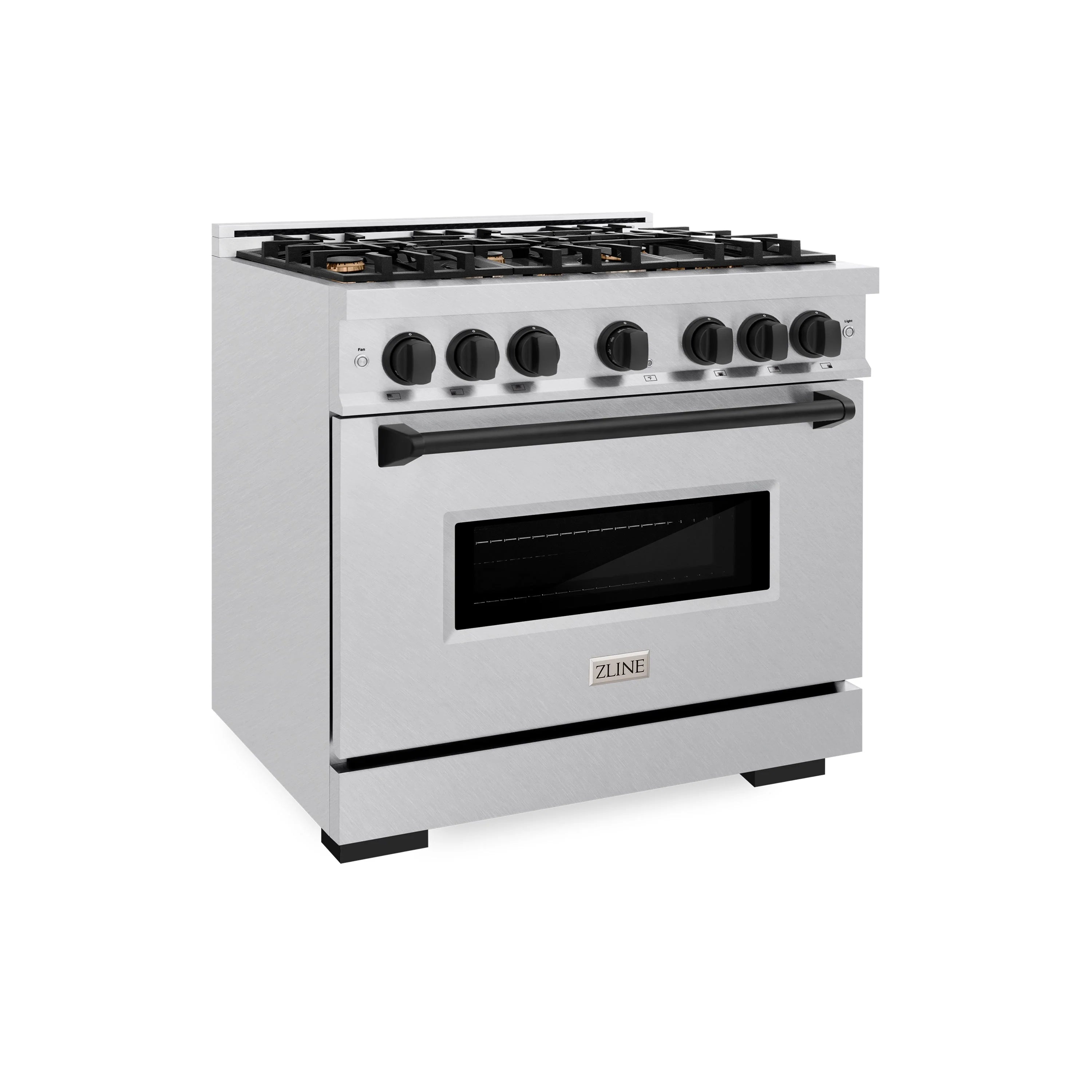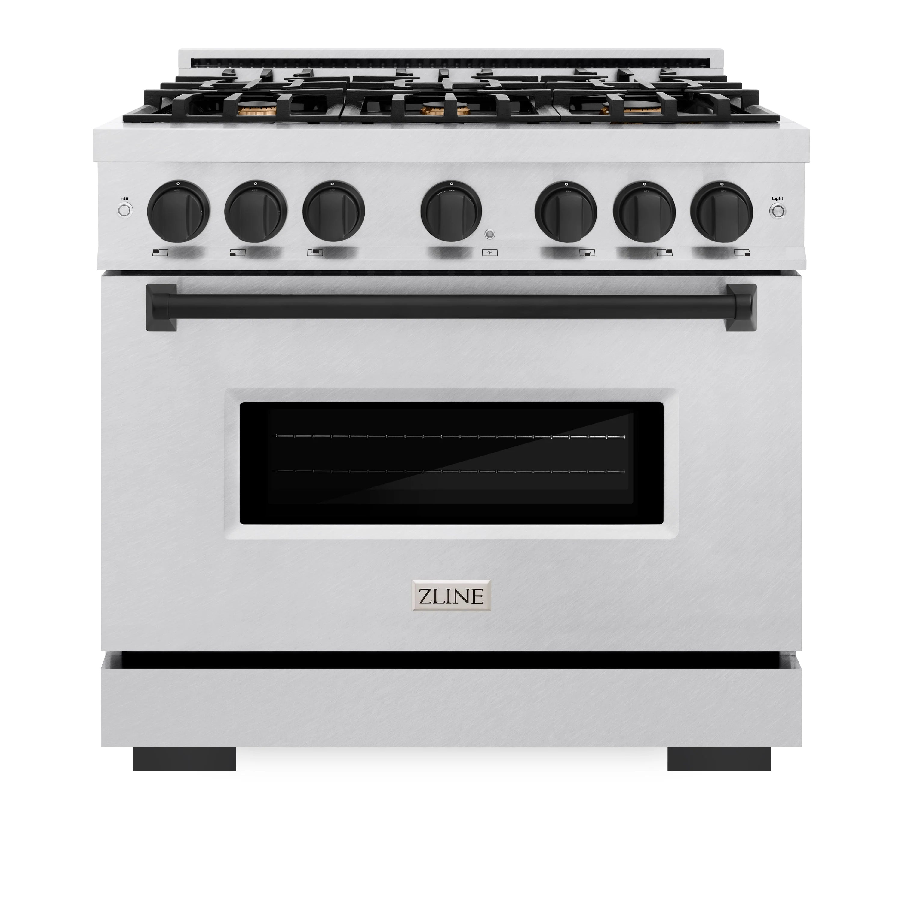Luxury isn’t meant to be left desired—it’s meant to be attainable. The ZLINE Autograph Edition 36 in. 5.2 cu. ft. Classic Dual Fuel Range with 6 Burner Gas Cooktop and Electric Convection Oven in Satin Stainless Steel with Matte Black Accents (CDRSZ-36-MB) combines the elegance of a hand-finished porcelain gas cooktop with 6 Italian-made auto-reignition burners, an electric convection oven with an energy-efficient cooling fan to ensure quiet operation, a Landscape oven door window design, and stunning matte black knobs and handle allowing you to master every meal. With a modern, timeless style and refined functionality, ZLINE Classic Dual Fuel Ranges are masterfully crafted to deliver an elevated culinary experience.