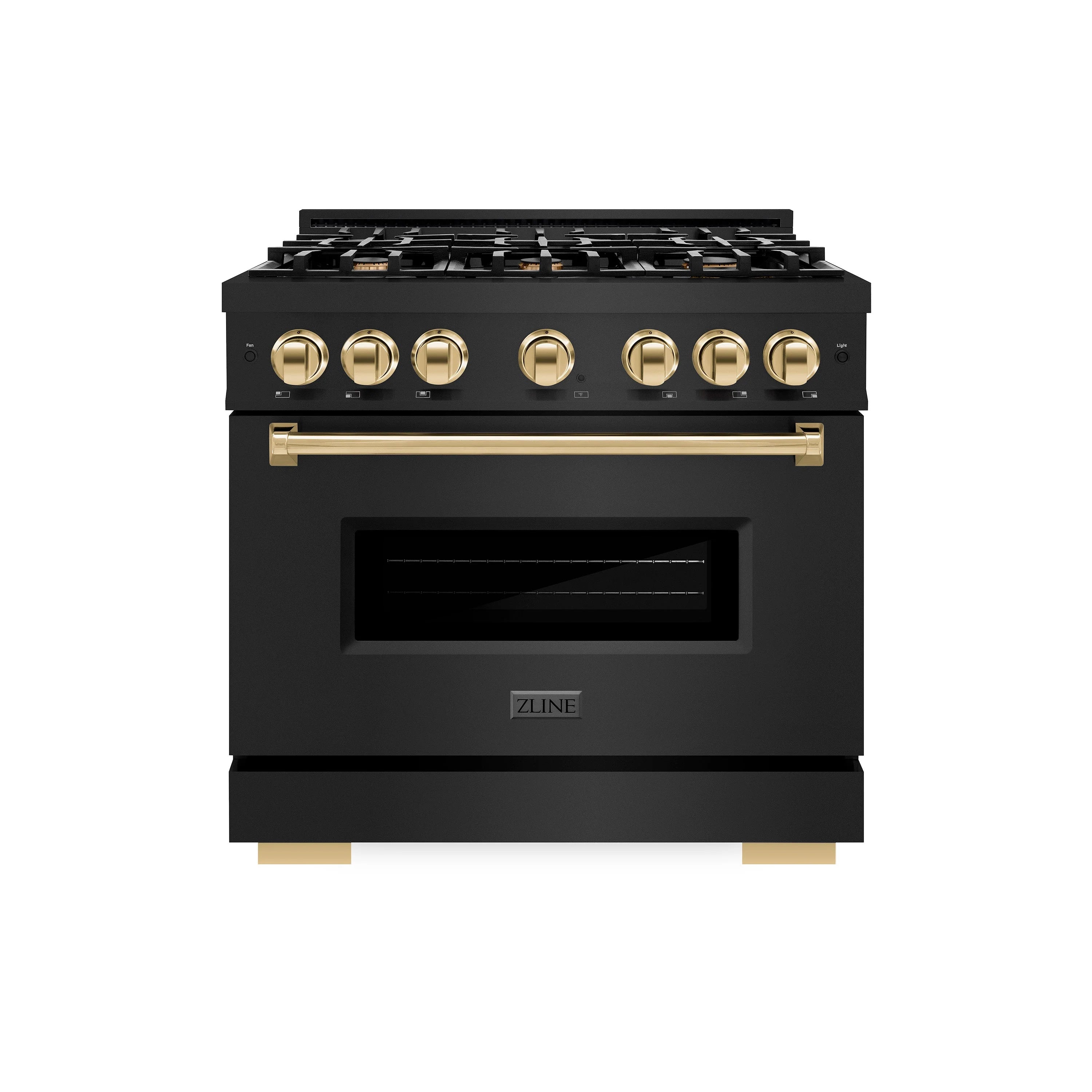 ZLINE - Autograph Edition 36 in. 5.2 cu. ft. Classic Gas Range with 6 Burner Cooktop and Convection Gas Oven in Black Stainless Steel and Polished Gold Accents
