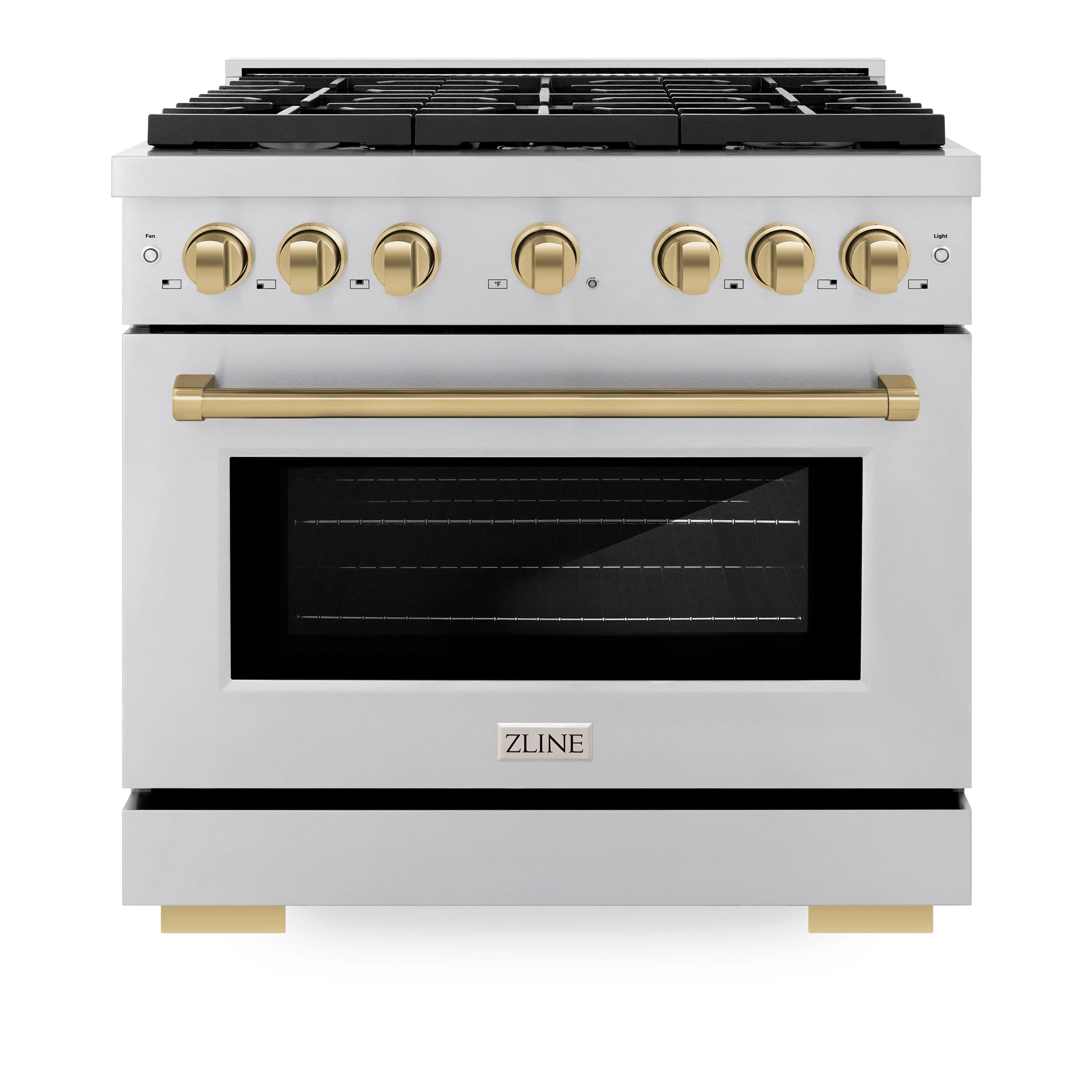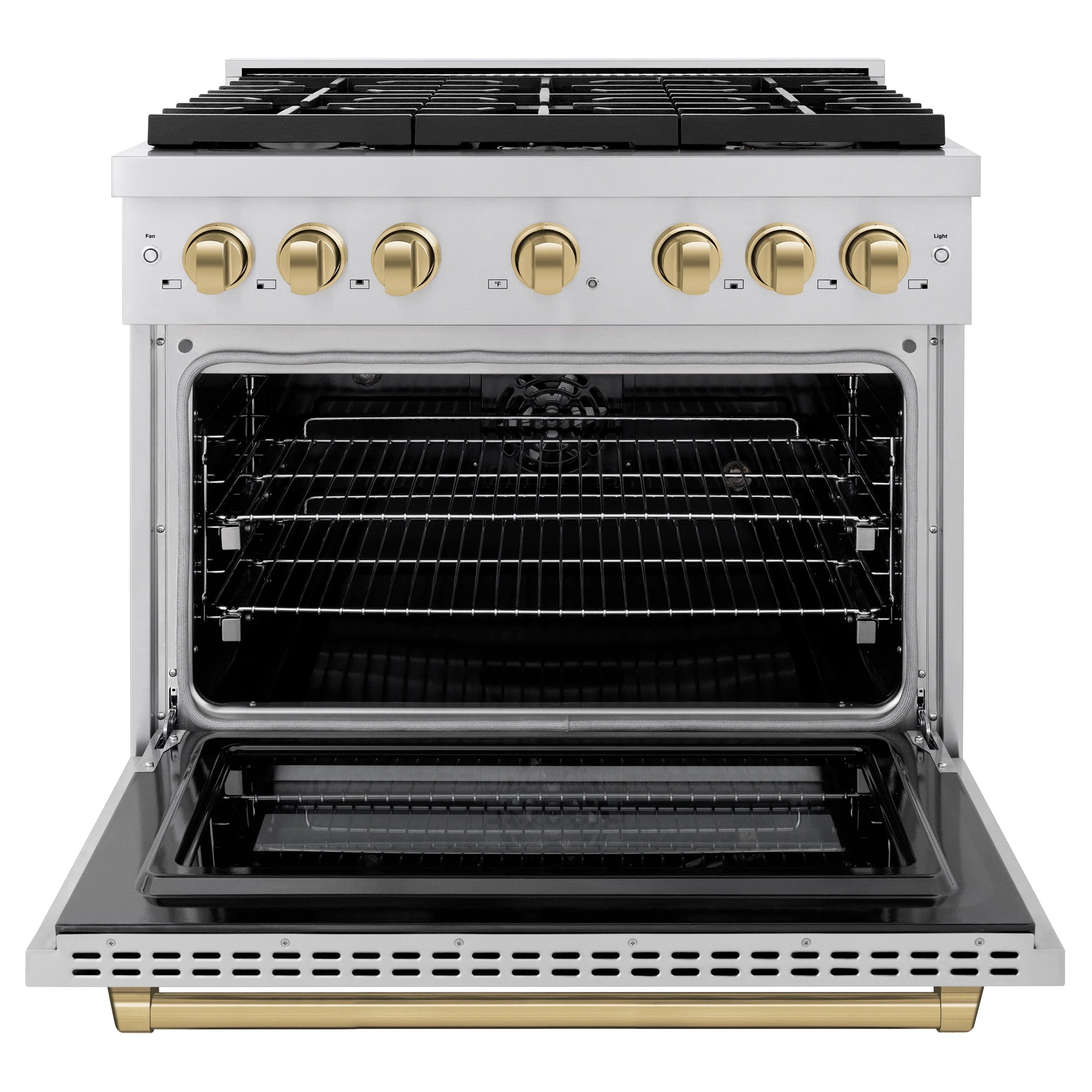 ZLINE - Autograph Edition 36 in. 5.2 cu. ft. Paramount Dual Fuel Range with 6 Burner Gas Cooktop and Electric Convection Oven in Stainless Steel with Champagne Bronze Accents