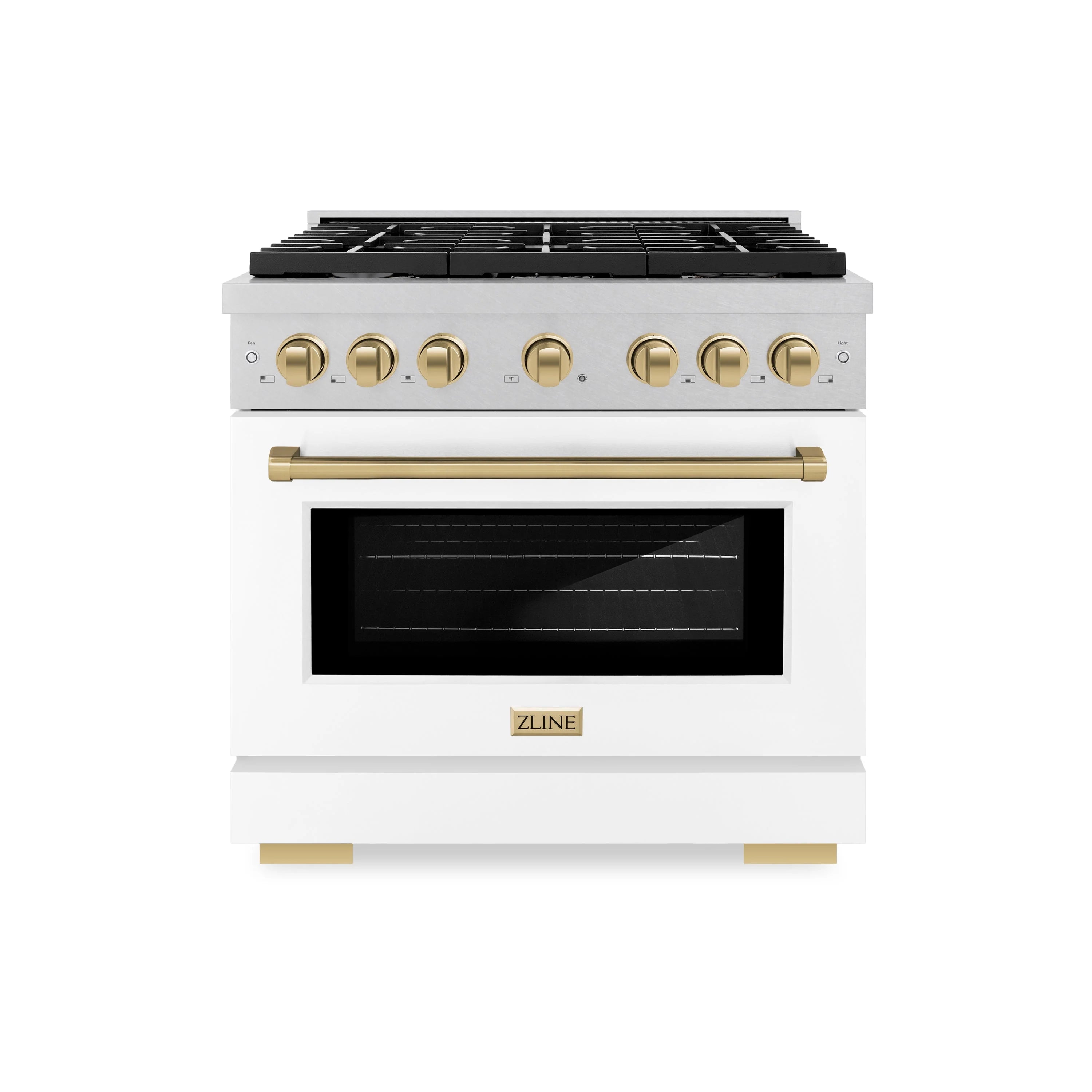 ZLINE - Autograph Edition 36 in. 5.2 cu. ft. Paramount Gas Range with 6 Burner Cooktop and Convection Gas Oven in Satin Stainless Steel with White Matte Door and Champagne Bronze Accents