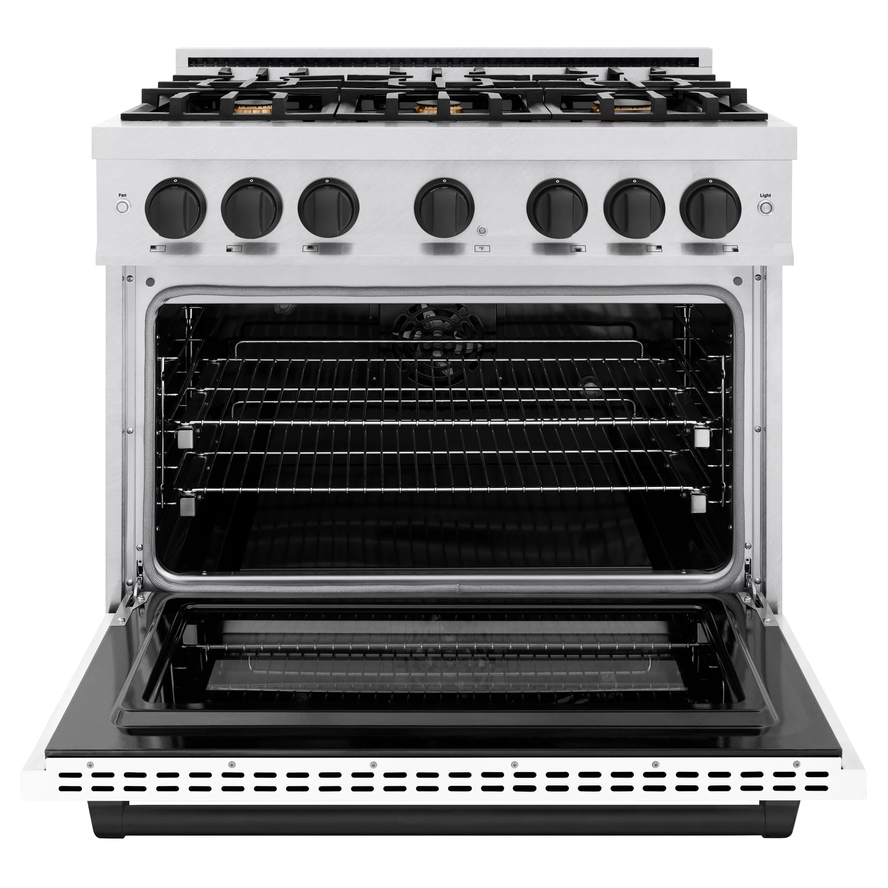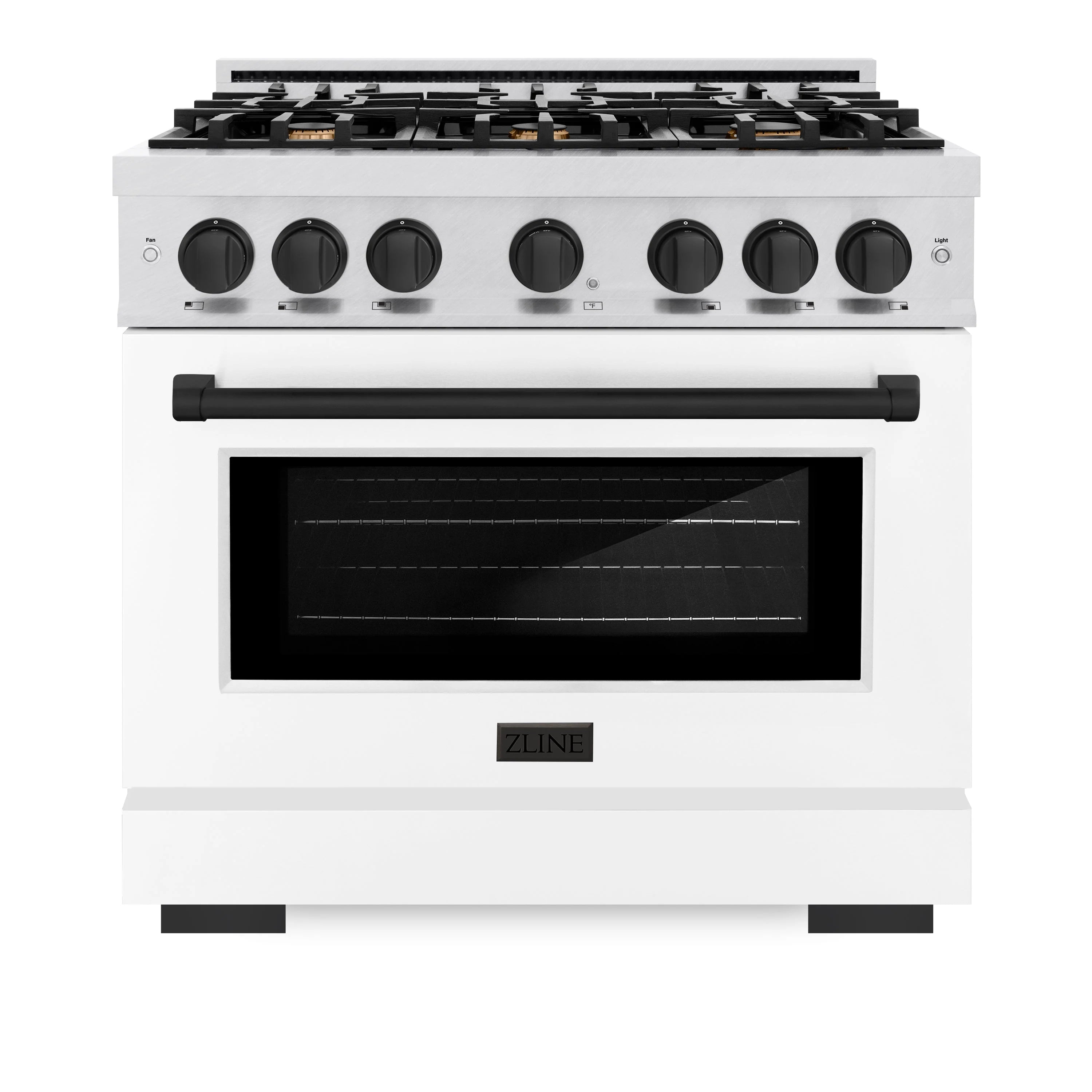 ZLINE - Autograph Edition 36 in. 5.2 cu. ft. Select Dual Fuel Range with 6 Burner Gas Cooktop and Electric Convection Oven in Satin Stainless Steel with White Matte Door and Matte Black Accents