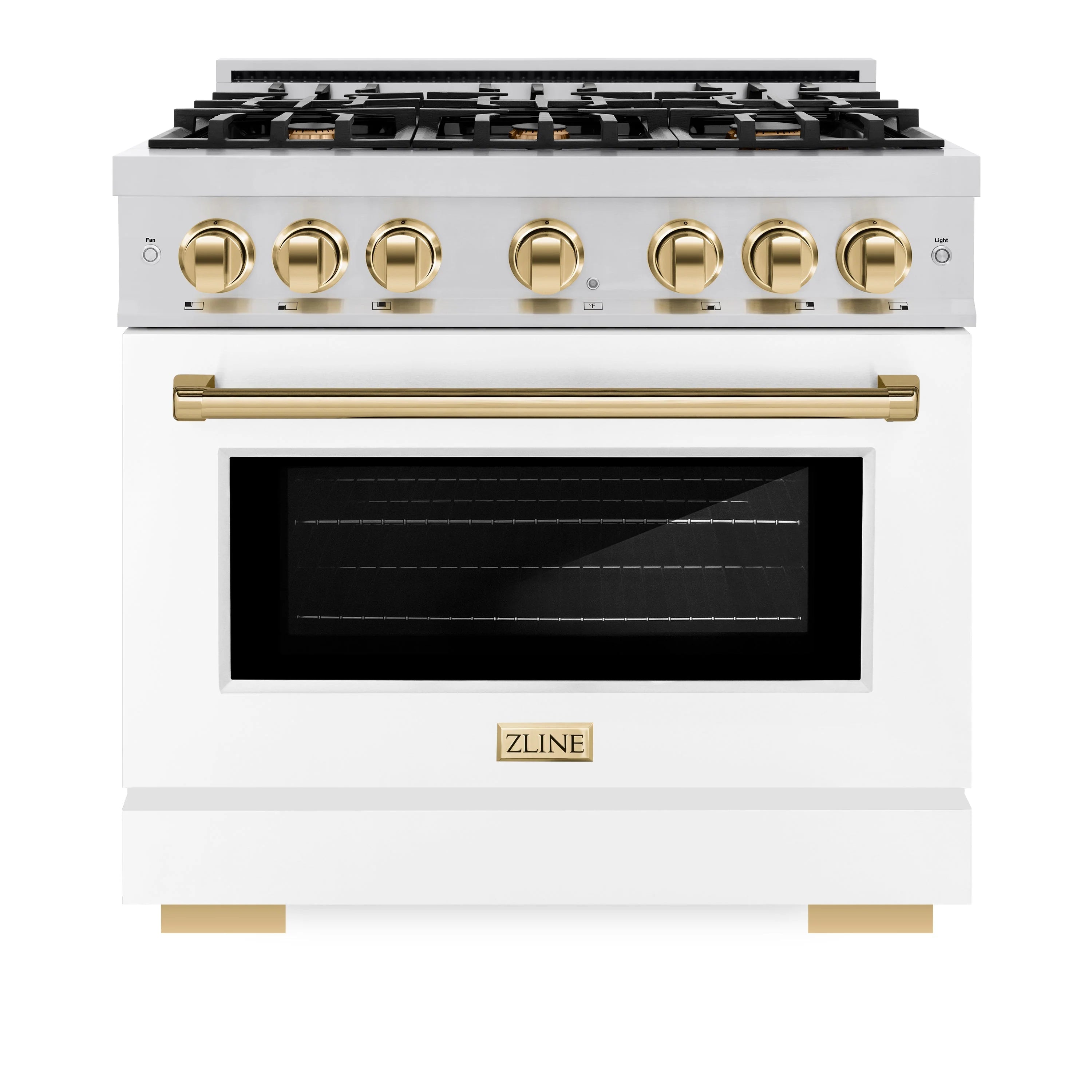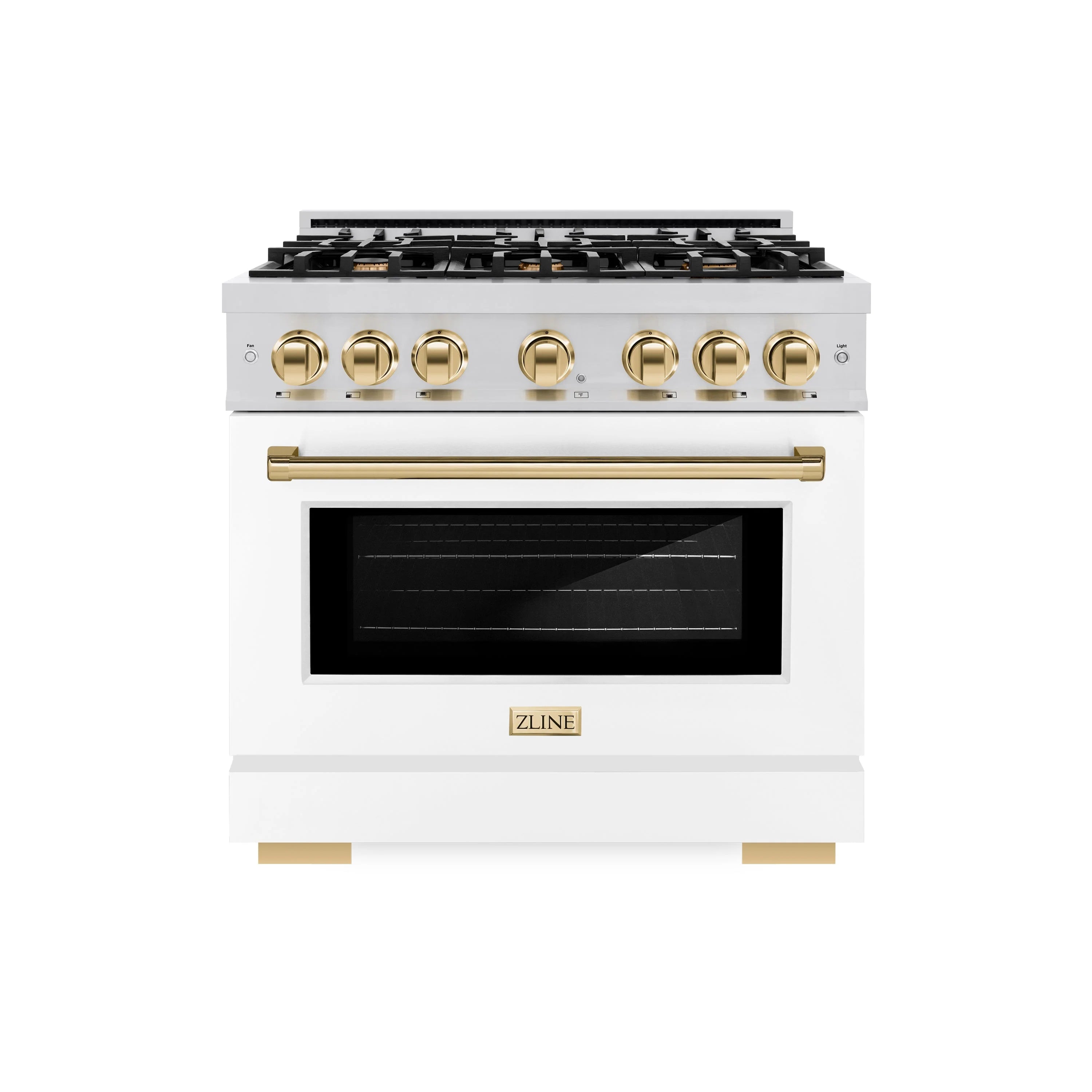 ZLINE - Autograph Edition 36 in. 5.2 cu. ft. Select Dual Fuel Range with 6 Burner Gas Cooktop and Electric Convection Oven in Stainless Steel with White Matte Door and Polished Gold Accents