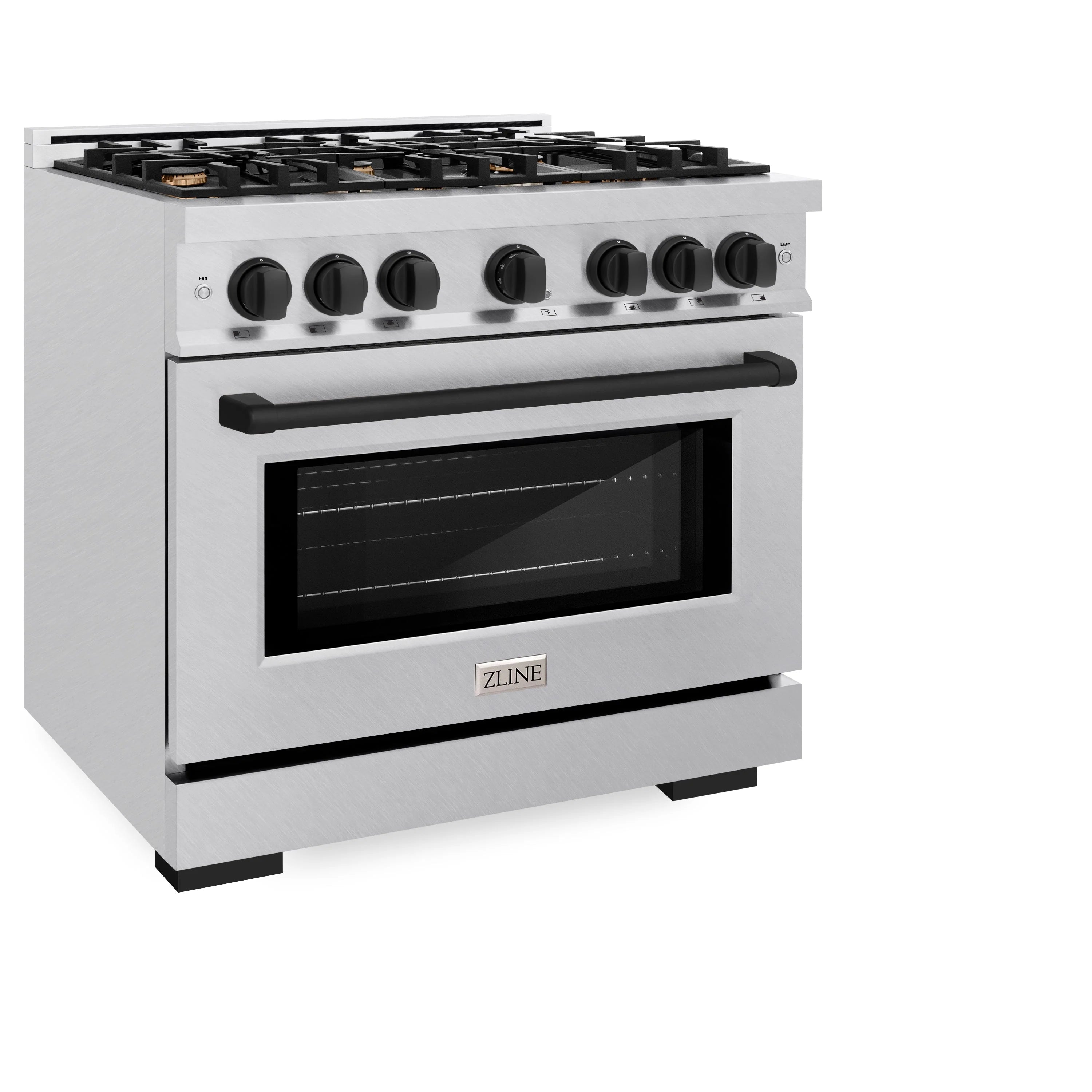 Luxury isn’t meant to be left desired—it’s meant to be attainable. The ZLINE Autograph Edition 36 in. 5.2 cu. ft. Select Gas Range with 6 Burner Cooktop and Convection Gas Oven in Satin Stainless Steel and Matte Black Accents (HGRSZ-36-MB) combines the elegance of a hand-finished porcelain gas cooktop with 6 Italian-made auto-reignition burners, a gas convection oven with an energy-efficient cooling fan to ensure quiet operation, a Horizon oven door window design, and stunning matte black knobs and handle allowing you to master every meal. With a modern, timeless style and refined functionality, ZLINE Select Gas Ranges are masterfully crafted to deliver an elevated culinary experience.