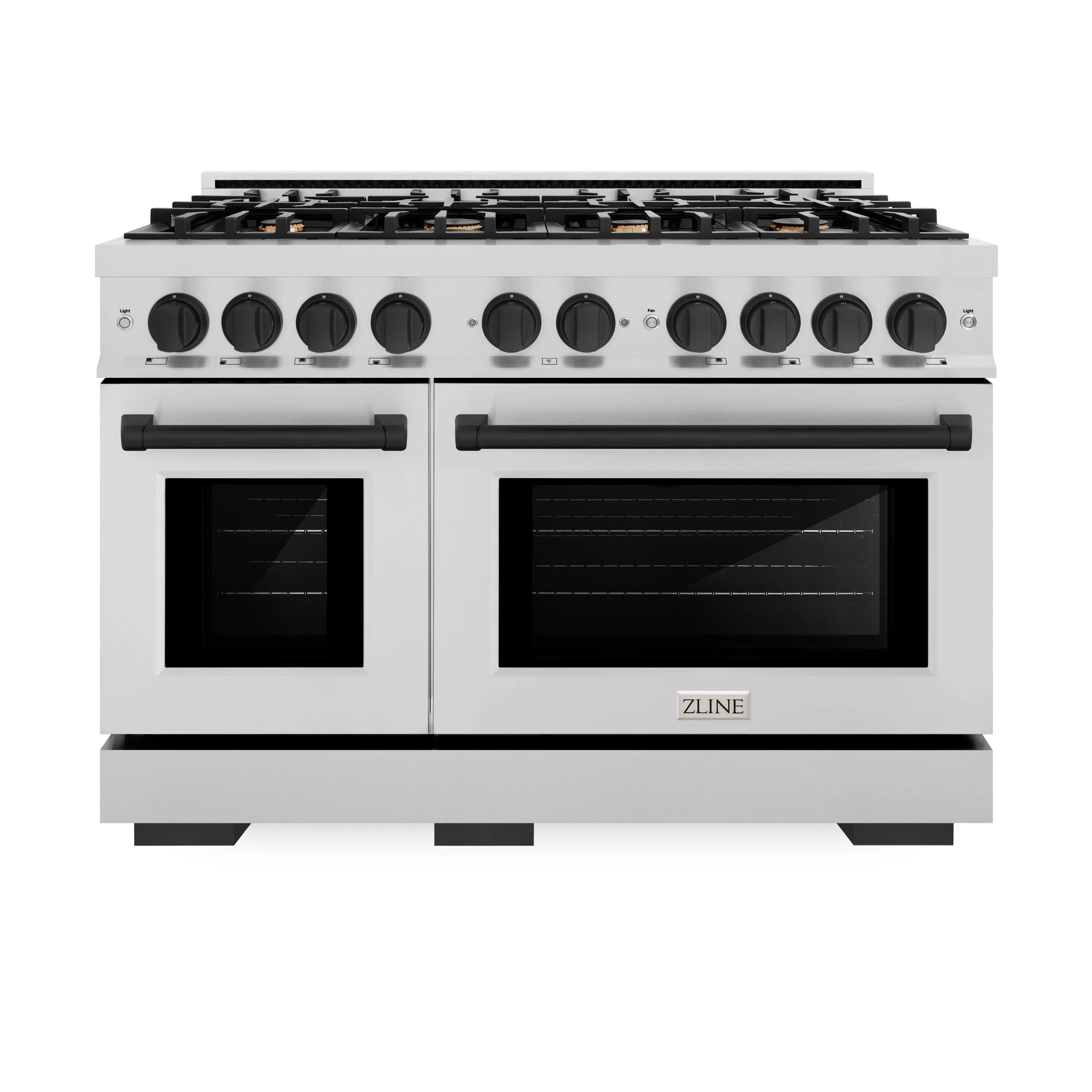 ZLINE - Autograph Edition 48 in. 6.7 cu. ft. Select Double Oven Dual Fuel Range with 8 Burner Gas Cooktop in Stainless Steel and Matte Black Accents